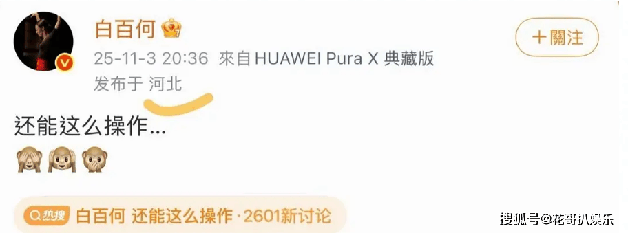到了这步,还只是网友讨论。但没想到正主居然下场了,开奖前白百何突然发微博“还能这么操作…”她的IP地址也是河北。