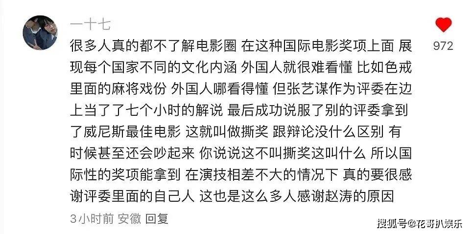 中国电影走出世界是从张艺谋、巩俐、梁朝伟那个年代开始的,从那时起,就有撕奖的传统,圈内人也不避讳,李安就曾直言感谢张艺谋帮他撕奖。