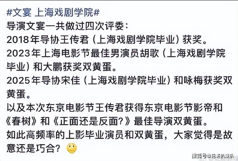 文晏一共做过四次评委,这四次评委的获奖演员都是沪圈的人。这巧合未免太巧了吧。