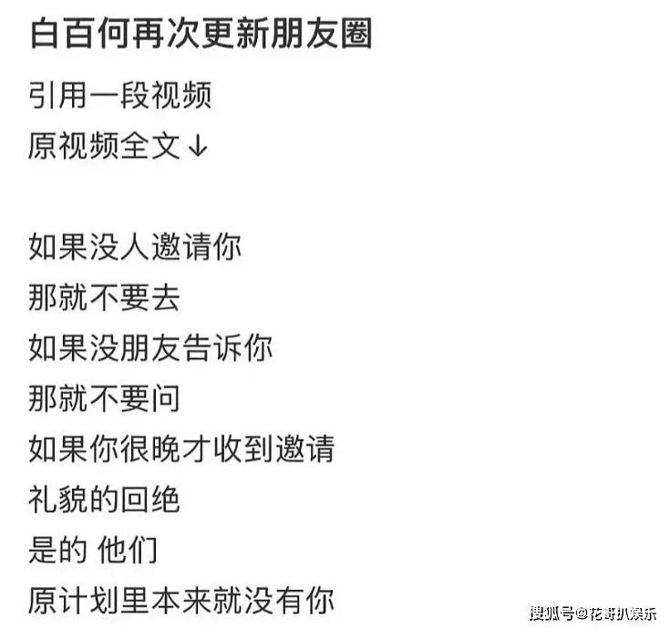 当然了,最笑不出来的应该是白百何,她又发了一条朋友圈。说自己没有被邀请,这是明示了。