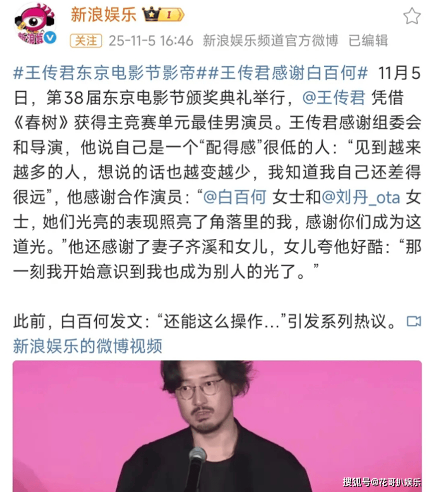 谁能想到,今年的东京电影节竟然这么热闹,奥斯卡也得避其锋芒了。白百何一条微博直接引爆网络,将东京电影节的关注度推向新高。可能还有宝子们不了解发生了什么,花哥在这给大家