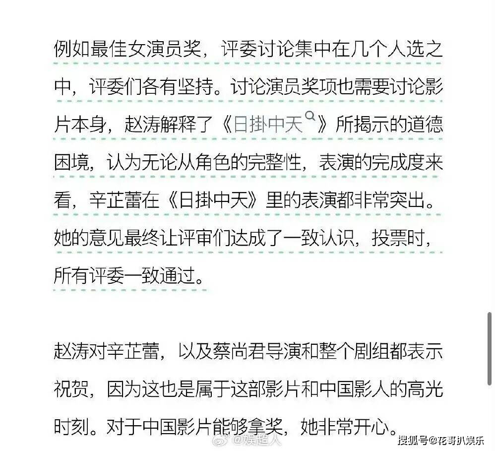 当初辛芷蕾能拿下威尼斯影后,就是评委赵涛帮她撕来的。