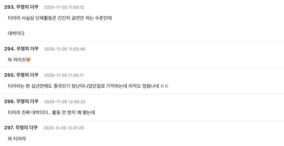 对比当下女团厮杀激烈的“战国时代”,T-ARA的躺赢更像一场行为艺术:不靠回归轰炸,不拼流量数据,纯靠情怀续航。有网友精辟总结:“这哪是榜单?分明是青春复活赛!”而当NewJeans、LE SSERAFIM等四代团忙着卷概念、拼销量时,T-ARA默默用“化石级”人气提醒市场:真正的国民度,经得起时间腌制。
