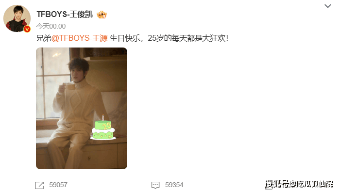 11月8日零点整,整个娱乐圈仿佛都为这一时刻停顿了一下,王俊凯准时在社交媒体发文:“兄弟生日快乐,生日快乐,25岁的每天都是大狂欢! ”配图是带有小蛋糕与话筒的温馨图