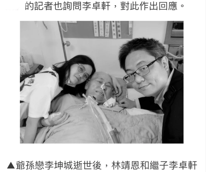 内地有老少恋,杨振宁翁帆,台湾也有一对老少恋李坤成和林靖恩,但说实话,后者比前者差太多了。男方离世之后,翁帆被安排的很好,反观林靖恩呢,钱花完之后,已经开始过上要饭的生活了l李