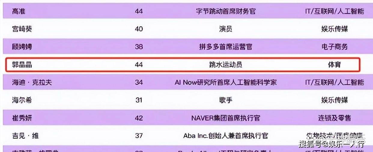 2025年11月5日,当“亚太地区最具影响力青年女性榜单”发布时,郭晶晶的名字与刘亦菲、贾玲、章泽天等各界精英并列出现。 这份涵盖APEC 21个经济体的硬核评选,不看流量不看颜值,只认可实打实的社会贡献与国际声量。 而郭晶晶的入选,让许多人恍然大悟:这位44岁的跳水女皇,早已在退役后的十四年里,悄无声息地完成了人生多重身份的华丽转型。