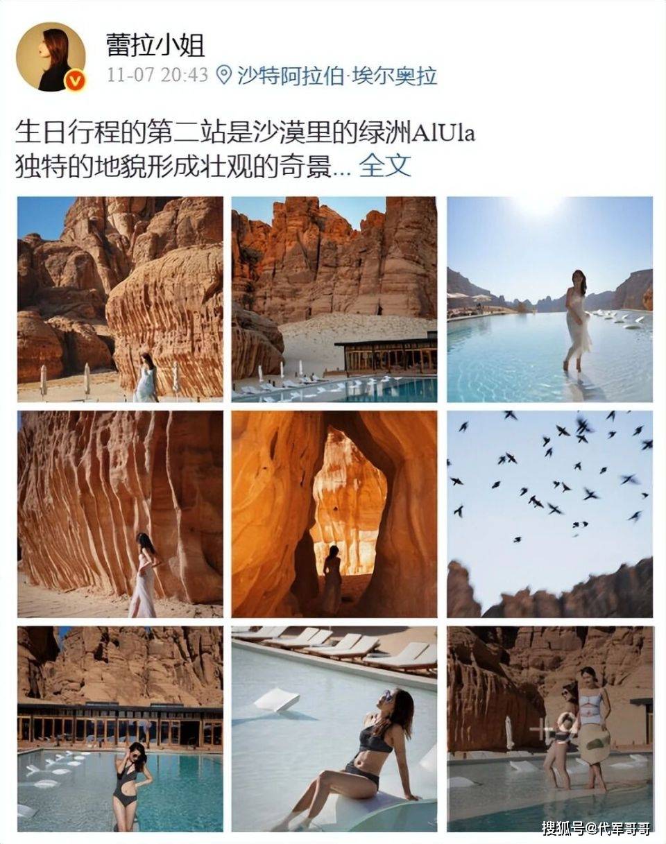 近日,39 岁的许婧在沙特为自己铺开了一幅极致浪漫的生日画卷。她将庆生第二站选在被誉为 “外星景观” 的岩石酒店,即便淡季,这里的入住单价仍高达 2 万 8 一晚。这