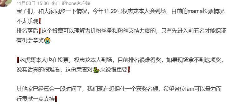 他今年即将出席mama颁奖典礼,粉丝氪金、投票都投不过别家,可能面临到场却拿不到奖的尴尬,不少粉丝都开始着急催票了。