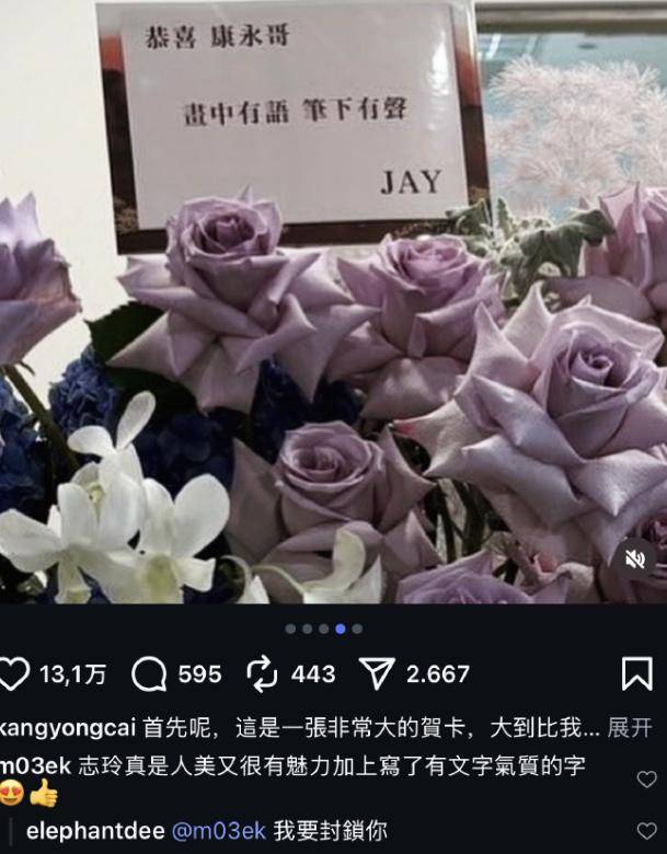 他还抽空给蔡康永送了花和祝福语,得到了蔡康永的发帖感谢。
