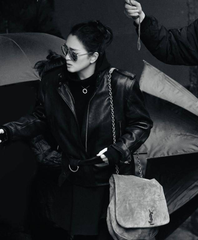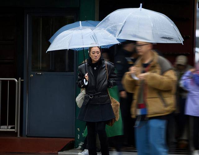 你敢信?60岁的巩俐啊,穿着黑色皮衣,手里拿着透明雨伞,在雨中慢悠悠地逛公园,那气场,简直了!