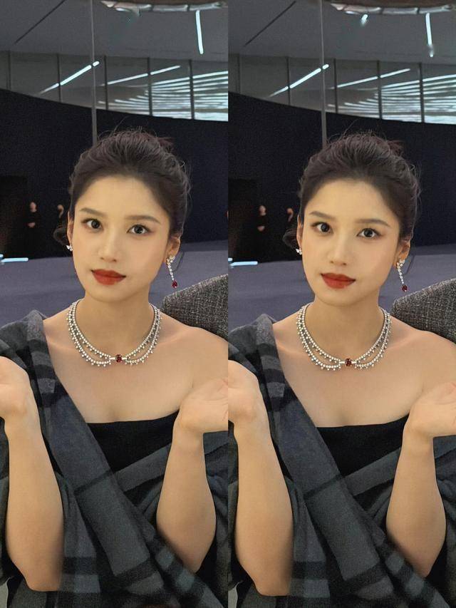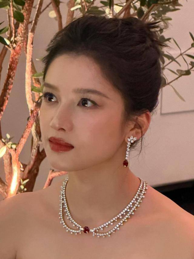 不过换了另外一条珠宝,绿色换成了红色, 张婧仪驾驭的还是非常的好。