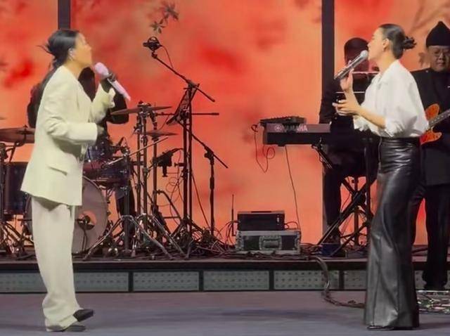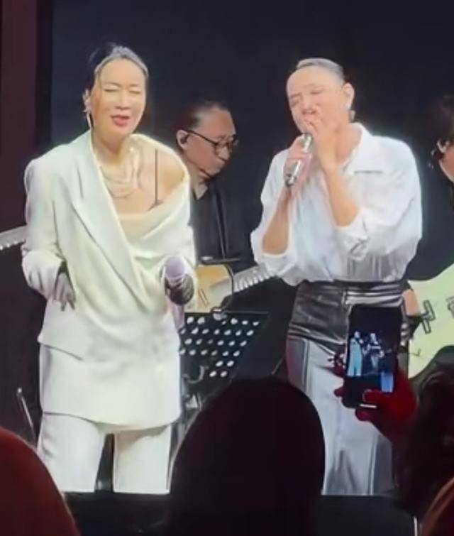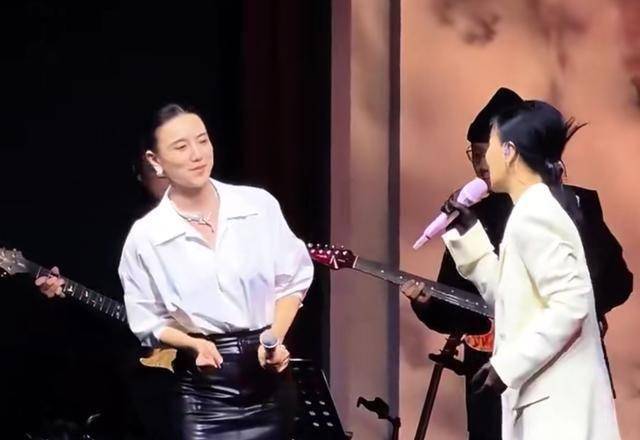 在合唱的时候,也会非常自然而然的递上话筒,整个过程很大方体贴,完全颠覆了很多人对那英以往的刻板印象。