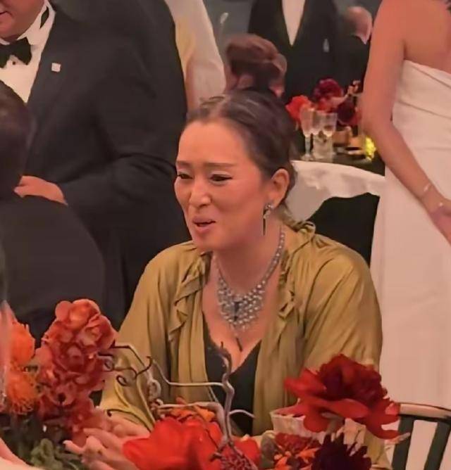 但是巩俐并不在意,没有做什么发型就去参加晚宴了,和其他的富婆,坐在一起,毫无明星包袱。