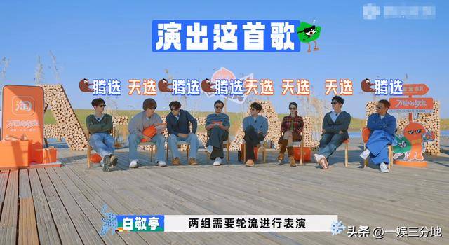 分成天选组和腾选组玩“演出这首歌”的游戏时,金晨几乎都是看别人在演绎。