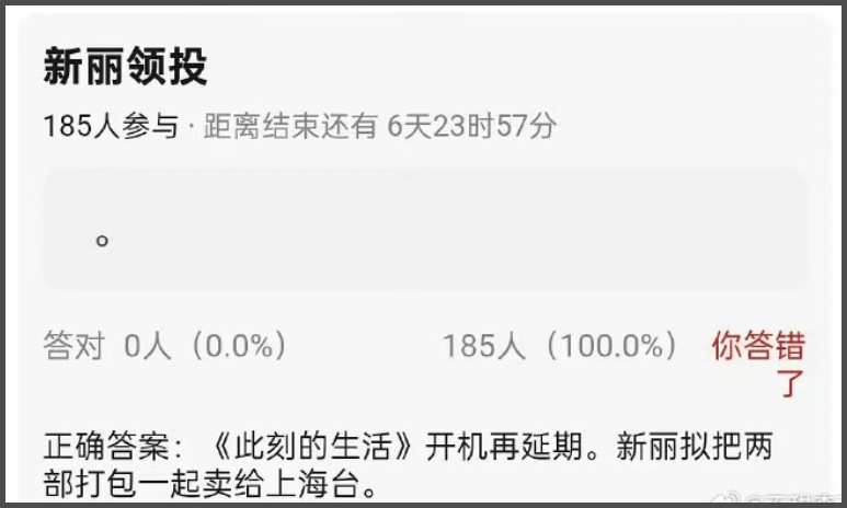 另一部剧《此刻的生活》虽然班底没有爆雷,但由于和《爱情没有神话》属于同一投资方,开机也延迟了。网友爆料说资方打算把两部剧一起打包卖给上海台(东方卫视)。开机延迟可能是因为相关事宜还在洽谈中。