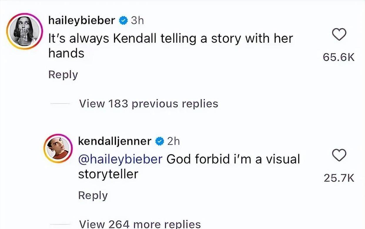 海莉赶紧在评论里逗一句:“肯豆就是靠手讲故事的专家。”