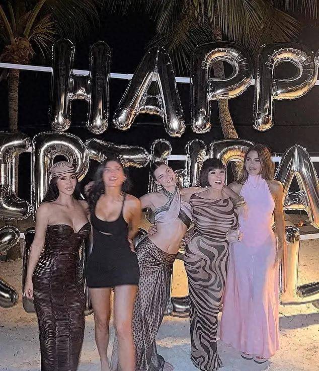 除了平时很少露面的大姐考特尼之外,卡戴珊家族的姐妹们都到齐了,在那巨大“Happy Birthday Kendall”的银色气球前,大家一起合影留念,气氛热烈又温馨。