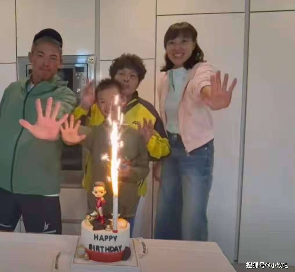 这次生日聚会的照片里,9岁的小羽身穿运动服,精神抖擞,身高已经接近1米4,身形挺拔,显得有些成熟。他的脸上隐约能看到妈妈笑容的影子,而他的发色因为长期在阳光下训练网球,呈现出自然的浅棕色,这一细节也说明了他真正投入到自己的运动中,没有走老爸的羽毛球路线,而是选择了属于自己的方向。