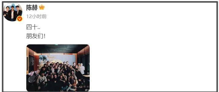 陈赫40岁啦!他分享了与朋友们一起庆生的大合影,照片中合影人数多达30多位,当中有邓超、鹿晗、范志毅、老舅等圈内好友,也有妻子张子萱和两个女儿,氛围很温馨。