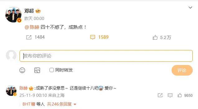 生日当天,邓超卡零点发文,喊话陈赫:四十不惑,成熟点。