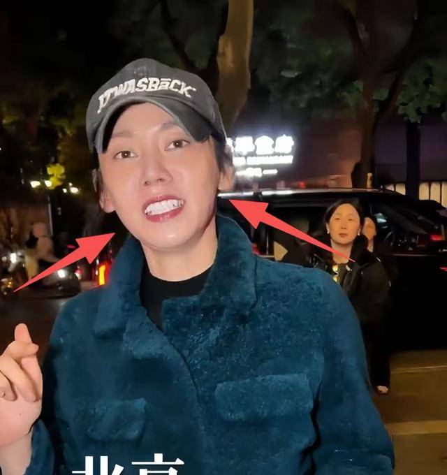 她蓬头垢面带着鸭舌帽,穿着蓝色毛绒外套,虽然身材保持得不错,但脸部状态却让人有点惊讶。