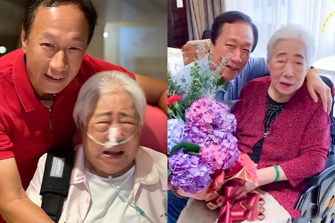 郭台铭是个非常孝顺的儿子,即便是母亲在住院期间、都会亲自贴身照顾。给母亲送花、陪她聊天解闷。