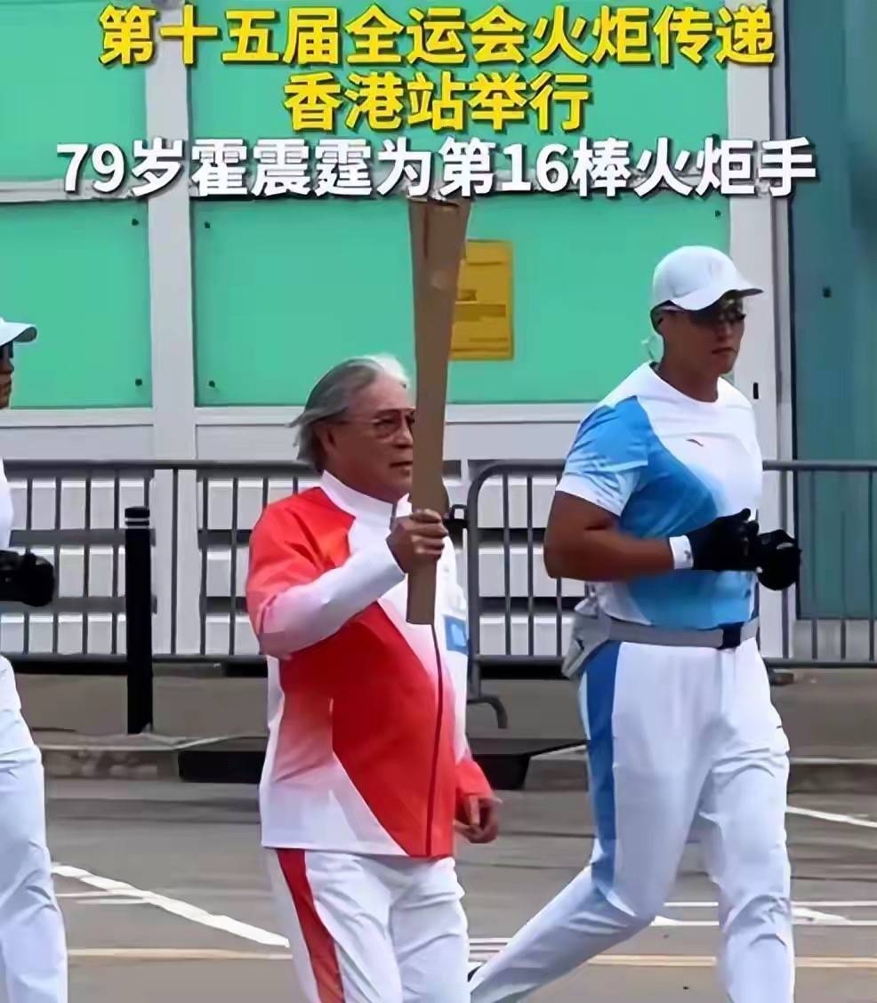 别看霍震霆已经快80岁了,这次全运会还参加了传递火炬的活动。他穿着红白相间的运动服,一头白发、满身正气,身板挺拔、气场超级强。