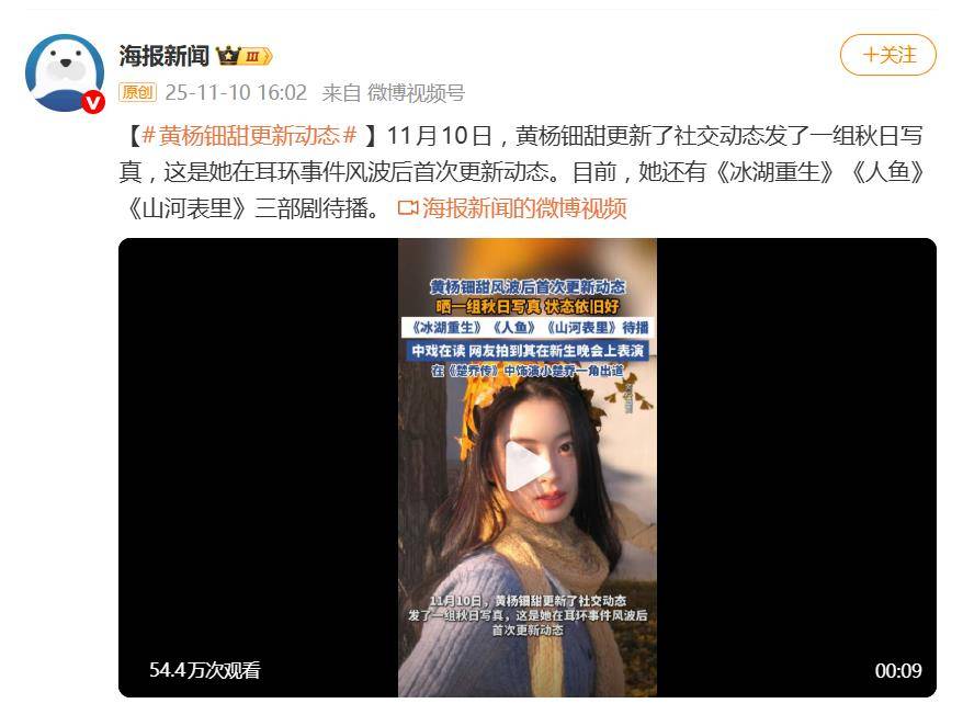 11月10日,演员黄杨钿甜在沉寂近半年后,突然更新社交动态,发布了一组秋日写真,瞬间冲上热搜。这也是自今年5月那场闹得沸沸扬扬的“天价耳环风波”后,她的首次公开亮相,被广泛视为一次谨慎的复出试水。