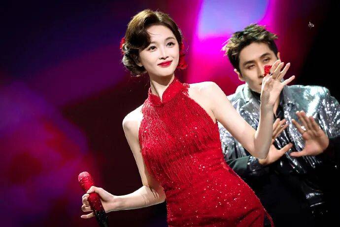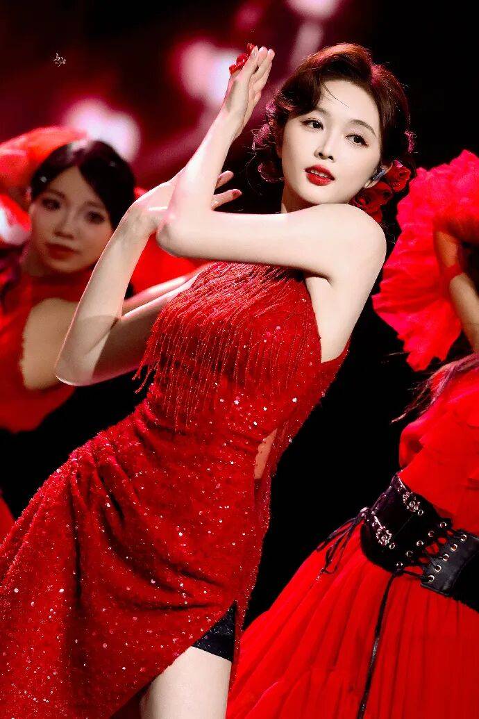 "1111惊喜之夜"晚会上,吴宣仪身着红色高开衩亮片旗袍,以威亚从天而降的方式亮相,她演绎经典串烧曲目《夜上海+玫瑰玫瑰我爱你+难道说》,这位女星真是美得让人窒息!她旗袍搭配玫