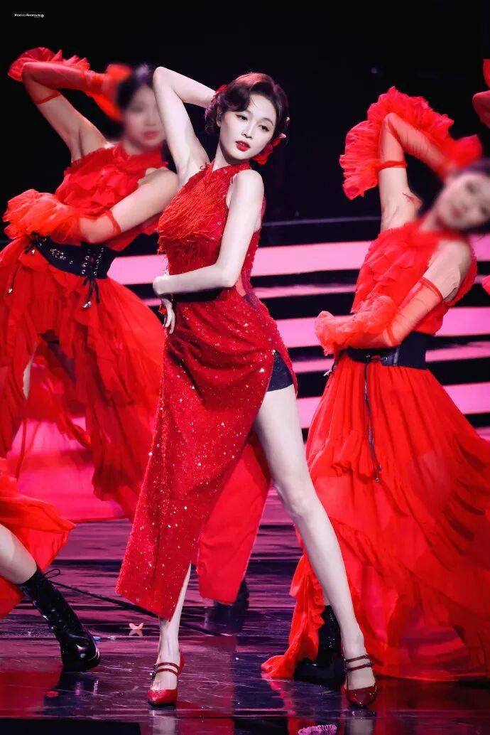 吴宣仪穿着旗袍搭,配玫瑰发簪,她俏脸清丽脱俗,在歌舞表演时候,她高开衩裙摆展现腿部优势,当真性感撩人!