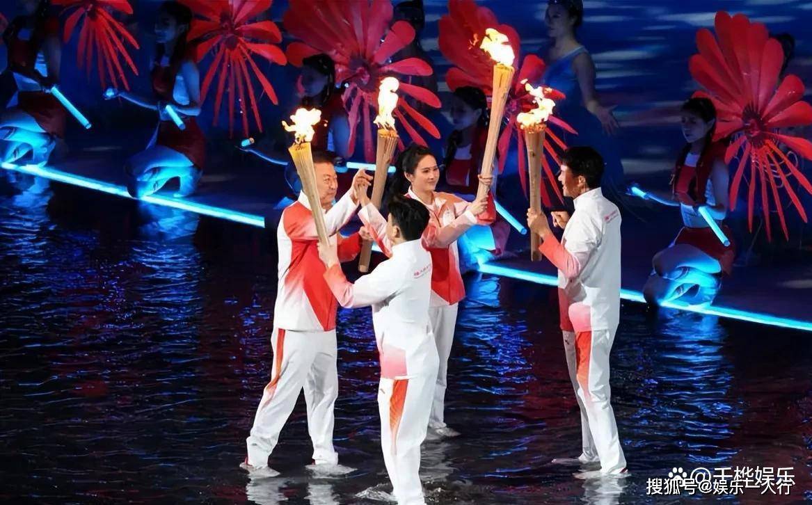 更让我惊讶的是,主火炬的火焰竟然来自南海1522米深处的可燃冰! 这簇“深海之火”经过香港、澳门、广州、深圳传递,最终由苏炳添、张家朗和李祎三位来自粤港澳的运动员共同点燃。 那个同心圆造型的主火炬台点燃后居然会跳跃浮动,科技感直接拉满。