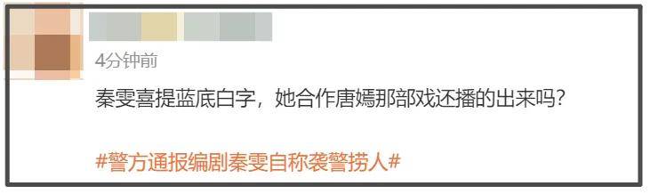 虽然秦雯的袭警风波告一段落,但找枪手问题她依然没有正面回应,唐嫣的新剧本来就因为秦雯风波而被撤档退货。秦雯对此不仅没有回应,通报发出之后,也没有发文为自己曾经的言论道歉。