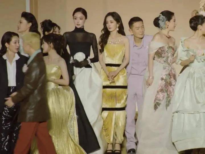 事情得回10月23日的VOGUE中国二十周年盛典。那天钟楚曦穿了件1987年的 Nina Ricci 古董礼服,八斤重的裙摆得靠鲸骨支撑,走路都得小步挪。可到了集体合影环节,她的 “走位” 却突然灵活起来。