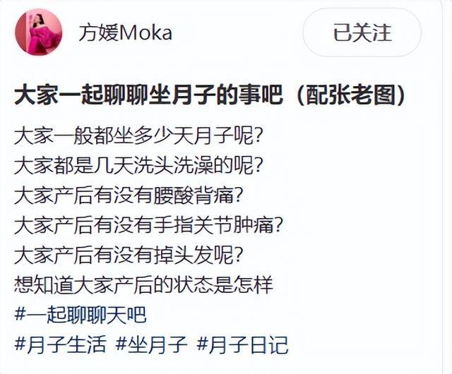 2025年11月11日上午,方媛在个人账号更新动态“大家一起聊聊坐月子的事吧”,这条看似普通的分享瞬间引爆全网!