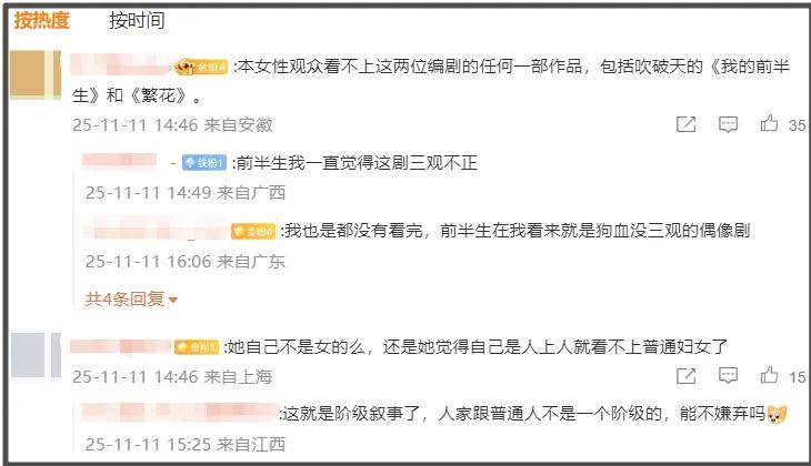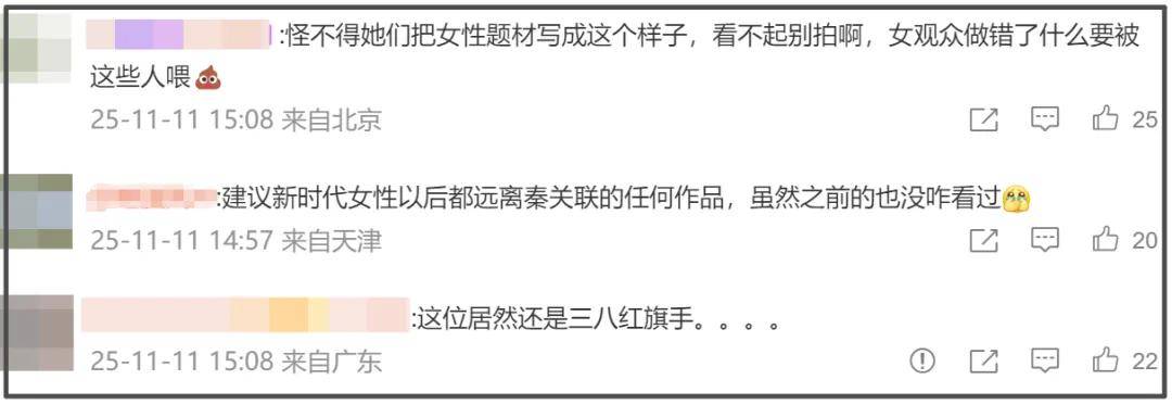 秦雯和许思窈平日里没少打着女性创作者的旗号给自己贴金,秦雯本人还拿过三八红旗手,吃尽了女性红利还看不起女性观众,正如网友所说,就该抵制她们所有作品!