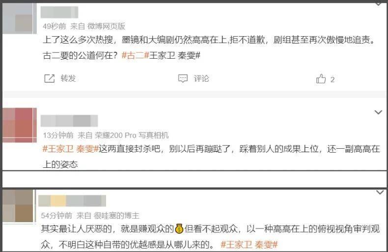 面对古二录音,除了“律师函警告”,《繁花》剧组迄今为止没有拿出任何有效澄清,王家卫和秦雯双双翻车,王家卫本人评论区沦陷,被网友喊话滚出中国,秦雯更是关闭评论区,编剧作品遭央视撤档,和王家卫眼见着要携手凉凉了。