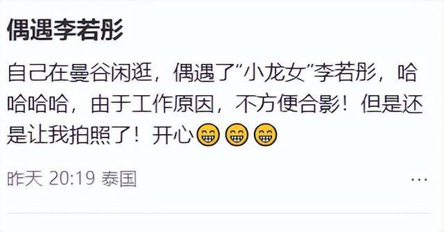 这不,近日就有网友在泰国曼谷偶遇了李若彤,当时她应该是与团队一起来泰国拍摄工作。
