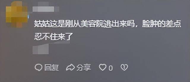 有网友调侃道:“姑姑这是刚从美容院逃出来吗?脸肿得差点让人认不出来!”