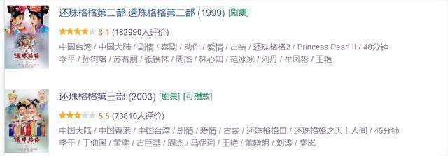 第三部《还珠格格》,由黄晓明、刘涛等人主演,阵容很强大,但却被网友打出了5.5的评分,妥妥的烂片,和前两部相比,差距不是一般的大。