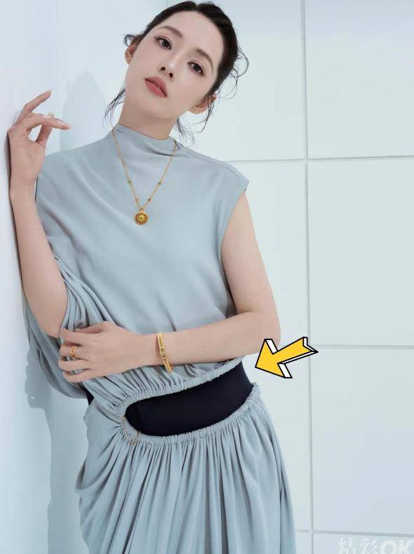 不知道怎么回事, 郭碧婷在里面穿了件黑色打底衫, 哇, 一下子那条裙子就没那个味道了, 变得好普通, 是不是当了妈妈, 连生两个, 不敢露腰了, 感觉人也保守多了,