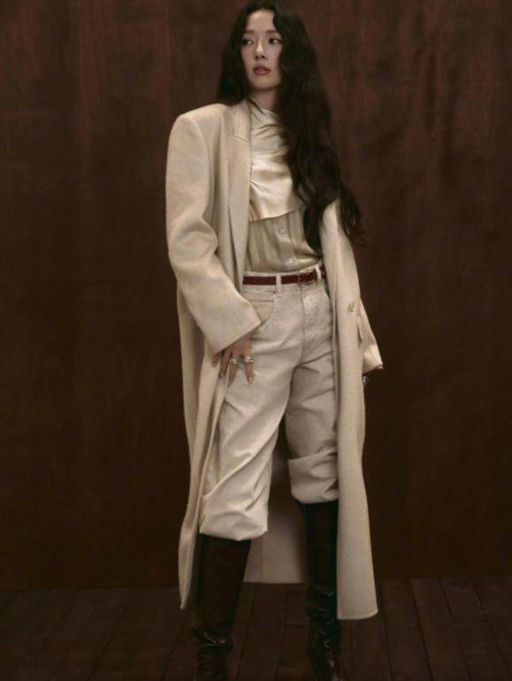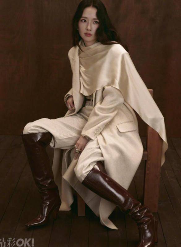 她穿西装配高筒靴那套也好看, 硬朗又优雅,