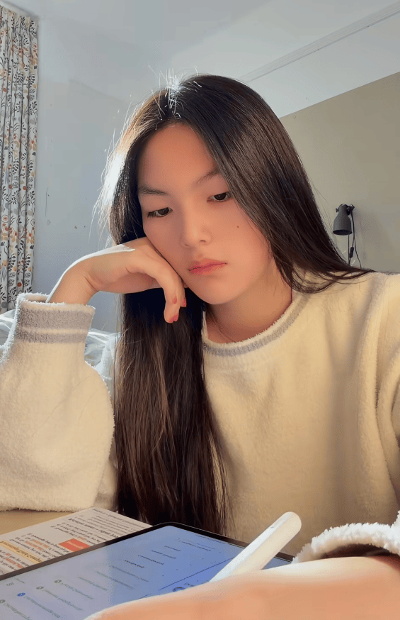 私下的王诗龄看起来真的好美,一个人安静的学习,之后还不忘去画画,穿着休闲服的时候瘦了好多比穿晚礼服好看太多了,独立生活的能力很强,和同学和老师交流的时候总是笑容满满。