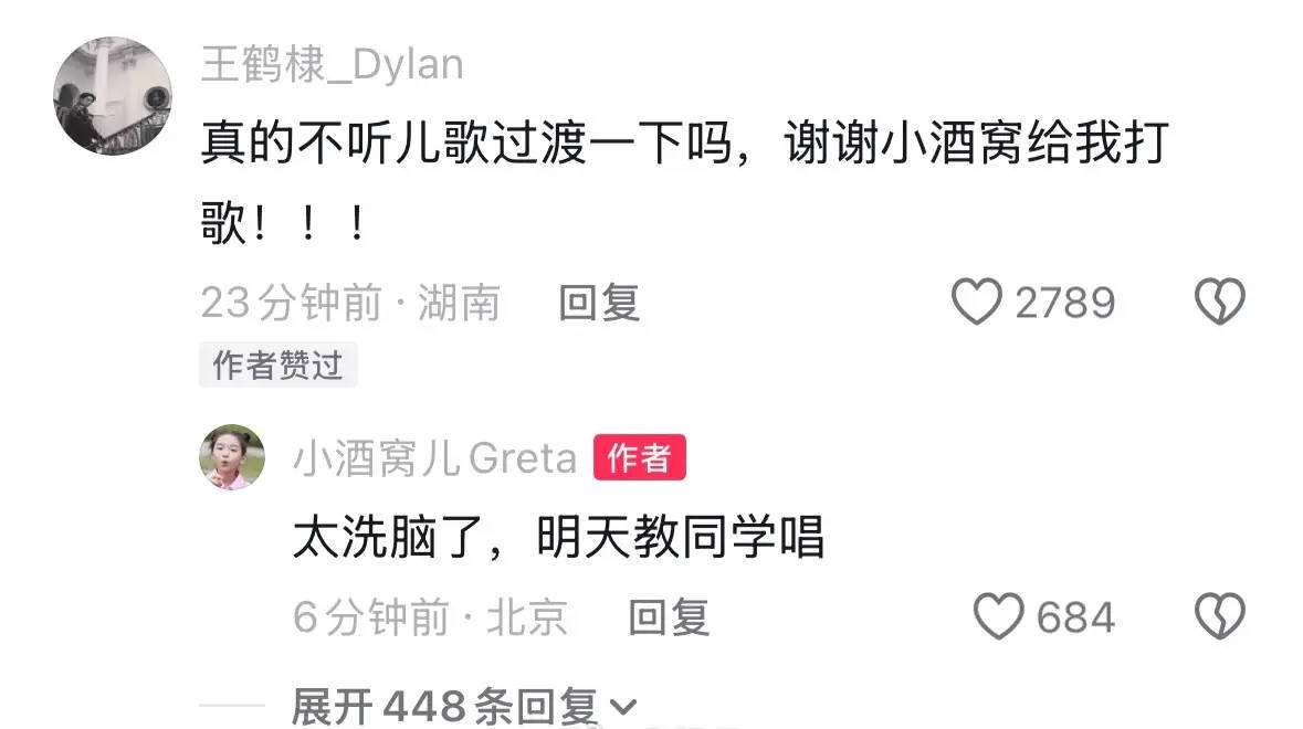 近日,小酒窝在社交平台发了王鹤棣新歌《Pretty》的舞蹈视频,精准复刻其标志性造型:墨镜、白西装搭配红领带。之后,王鹤棣在评论区回复“真的不听儿歌过渡一下吗?谢谢小酒