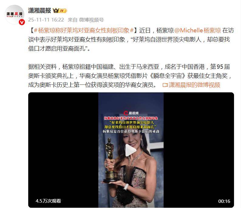 据11月11日报道,奥斯卡历史上首位华裔影后杨紫琼在一次访谈中直言不讳,矛头直指好莱坞根深蒂固的偏见——“好莱坞自诩世界顶尖电影人,却总要找借口才愿启用亚裔面孔”。这番犀利发言,瞬间揭开了这个全球电影工业中心看似多元包容下的另一面。