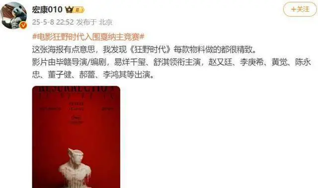 原本郝蕾已确定出演毕赣导演的《狂野时代》。