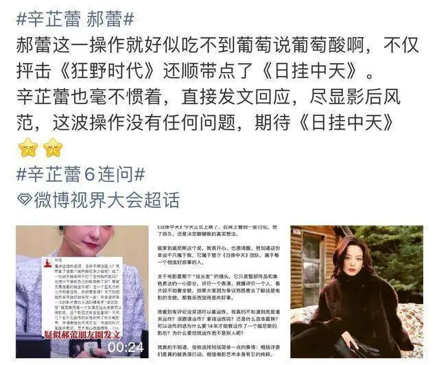 果不其然,对于郝蕾的抨击,辛芷蕾回应了此事。