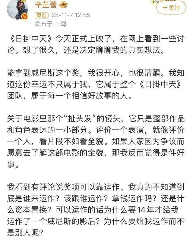 支持辛芷蕾的人说,她熬了14年才拿到国际影后,这是她应得的。