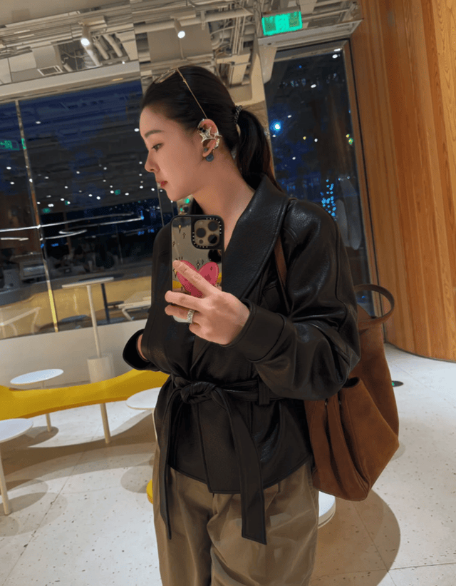 作为女演员,李小萌在穿搭方面很懂得扬长避短,身着束腰黑色皮衣搭配咖色阔腿裤,个头才162cm的她这样搭配身形显得修长很多。