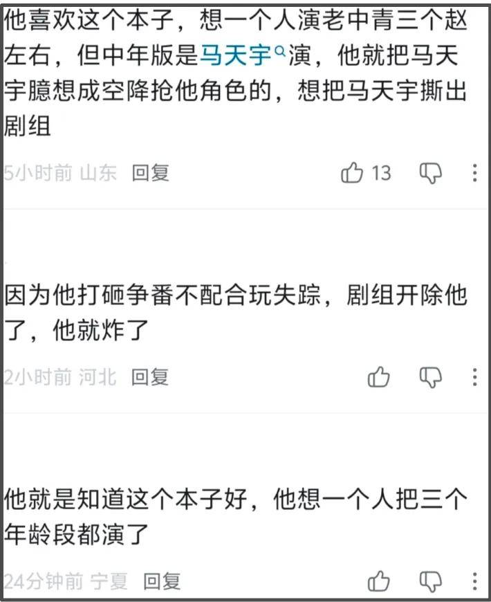 如今李明德引发的一系列风波彻底平息,他本人退了圈,参演剧集都换脸了,随着马天宇和《三人行》剧组再次提及李明德事件,网友猜测当初李明德的目的——他看上了马天宇在《三人行》中的角色,想要把人逼走自己演。