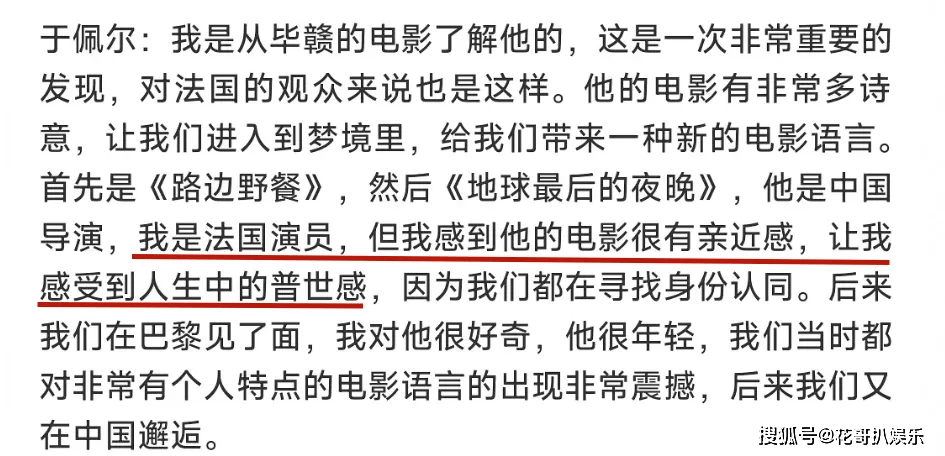 就连她在朋友圈diss的毕赣,于佩尔也公开表示过十分欣赏,甚至私下专门去看了郝蕾瞧不上的《狂野时代》。